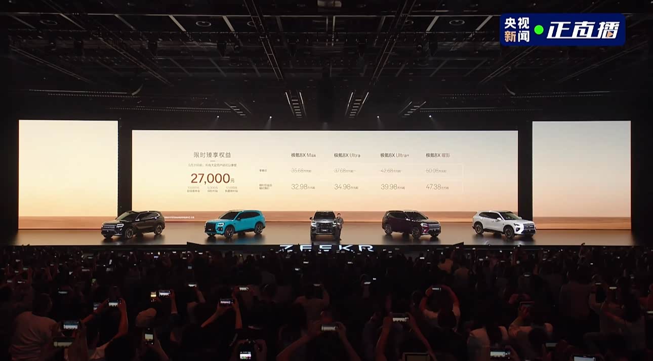 2026年4月17日,极氪汽车在宁波正式推出旗下全新旗舰SUV——极氪8X,以“新公路之王”之姿震撼登场。新车限时权益价32.98万元起,顶配曜影版售价47.38万元,凭借三电机兆瓦级电驱系统与900V高压平台,重新书写高性能混动SUV的性能法则。发布会现场,极氪官方宣布新车“上市即交付”,全国门店同步开启试驾,展现出强大的供应链整合能力与市场信心。 极氪8X在核心技术上实现多项行业突破。顶配车型搭载混动领域首个三电机系统,综合功率高达1030kW,零百加速仅需2.96秒,成为全球最快混动SUV。其70度电池支持6C超快充,20%-80%电量补能仅需9分钟,满油满电综合续航更达1416km。安全方面,新车首创“浩瀚安全盔甲”车身结构,通过七重连环碰撞测试,并在120km/h暴雨爆胎稳行测试中一次性通过,树立同级安全新标准。智能座舱搭载超级EVA助手与千里浩瀚G-ASD 4.0智驾系统,支持无图城市NOA及复杂指令自主规划,科技体验全面进阶。 极氪8X的上市,标志着中国品牌在高性能豪华SUV领域正式迈入“千万级性能、百万级体验”的新阶段。