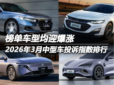 2026年3月中型车投诉指数排行:榜单车型均迎爆涨