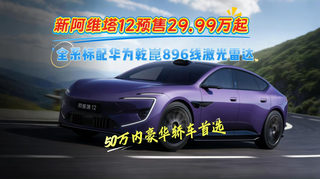 新阿维塔12预售29.99万起 全系标配华为乾崑896线激光雷达