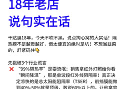 干贴膜18年,今天不吹不黑,说点掏心窝的大实话!隔热膜不是越贵越好,但太便宜的绝对是坑!不想当韭菜的,赶紧码住👇