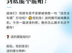 姐妹们!刚提车是不是都被销售一句“送您全车膜”打动啦?🤔但别急!送的膜可能暗藏玄机,今天一篇讲清利弊,教你怎么薅羊毛还不翻车!