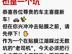 恭喜各位尊贵的车主喜提新车!🚗✨ 但在你兴冲冲去贴膜之前,请先停下!✋ 作为一个在贴膜江湖踩过无数坑的“老司机”,今天必须把行业内幕扒个底朝天!不想花几千块买个“蒸笼”回家的,这篇笔记一定要看完!📝