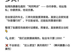 会 “接话” 的核心,不是抬杠,而是句句戳中要害—— 问参数、要质保、盯施工、拒加价,每句话都让店家知道你不是小白。 这样不仅能避开 90% 的贴膜坑,还能轻松砍到合理价格,贴到真正适合自己的好膜!