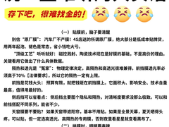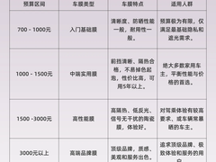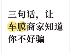 第一句: “贴个最便宜的就行” 店家内心:上钩了!库存染色膜清仓价198,成本30块 正确操作:报预算区间(如“1-3千有什么推荐?”),锁定中端陶瓷膜(美基V10这类)