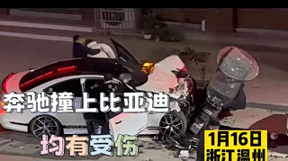 奔驰撞上比亚迪,比亚迪车主手指头受伤