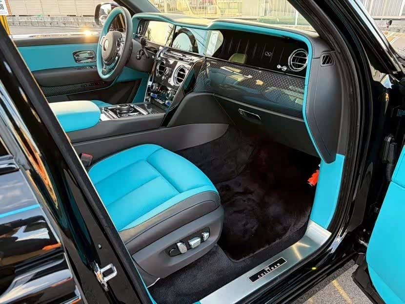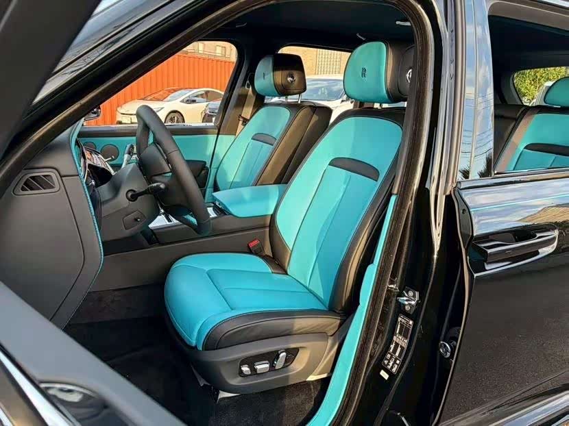 26 款库里南BB版 高配 颜色:黑/绿松石+黑 配置:双拼方向盘,绿松石双腰线,23 寸轮毂,副驾驶发光面板,后排娱乐,星空顶,碳纤维延展木。