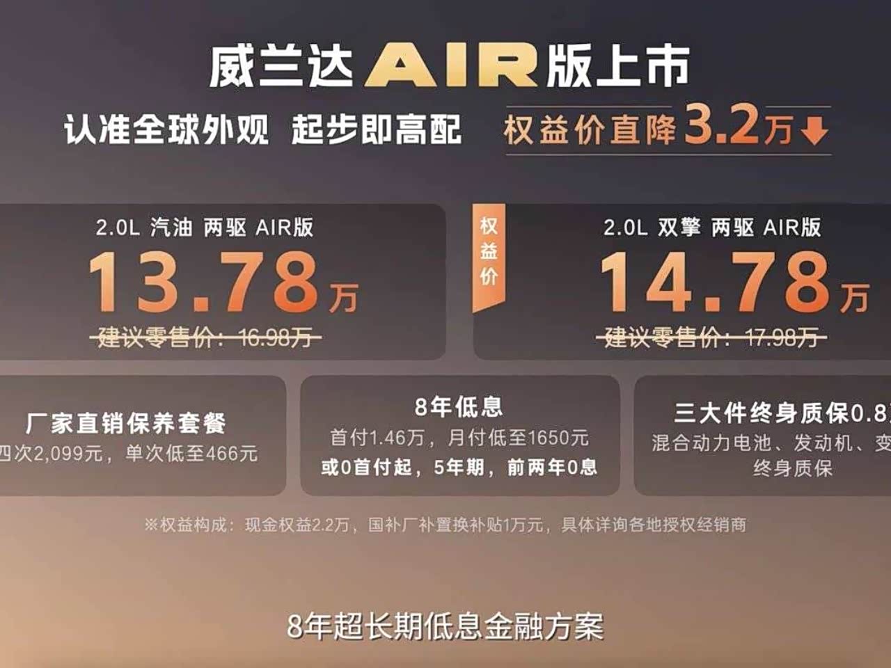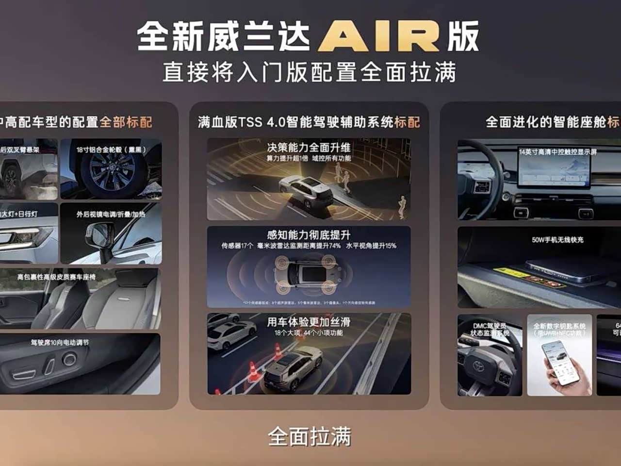 权益价格13.78万元起 广汽丰田全新威兰达AIR版上市