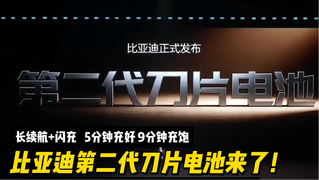 比亚迪第二代刀片电池来了!长续航+闪充,5分钟充好,9分钟充饱