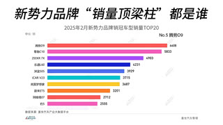 新势力品牌“销量顶梁柱”:2月新势力品牌销冠车型销量TOP20