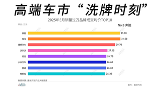 高端车市“洗牌时刻”:2025年5月销量过万品牌成交均价TOP10