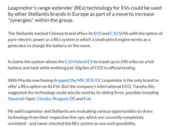 中国品牌增程技术获得欧洲老牌车企青睐,这一现象颇值得关注。 近期有消息显示,Stellantis集团计划引入零跑增程技术,供旗下标致、雪铁龙等品牌使用,这并非单纯的技术交易,背后折射出当前全球汽车行业的竞争与合作逻辑。 从技术参数来看,零跑C10增程版的核心表现具备较强竞争力。其满油满电续航里程可达950公里,纯电模式可满足日常市区通勤需求,能有效缓解长途出行中的里程焦虑,这一优势在充电网络尚未完全普及的欧洲市场具有实际价值。 更为关键的是,在欧洲严苛的WLTP工况下,该车型碳排放仅为10g/km,优于多数欧洲本土混动车型,精准契合了欧盟日益严格的环保政策要求。 值得注意的是,Stellantis集团早已持有零跑国际51%的股权,此次技术共享属于双方合作的自然延伸。 对欧洲车企而言,并非无法自主研发增程技术,而是自研需承担较长周期与高额成本,零跑凭借65%核心部件自研的垂直供应链体系,可帮助其缩短研发周期、控制成本。 此外,零跑B10车型将在西班牙与标致208共线生产,平台互通有望进一步降低双方的成本。 即便增程技术常被视为过渡方案,零跑第四代增程系统仍展现出扎实的技术功底,其热效率可达40%,油冷电驱效率超过95%,能耗控制优于传统混动系统。