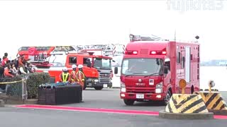 日本名古屋消防救援队游行展览,各种消防车救护车和直升飞机