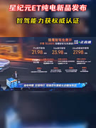 星纪元ET纯电新品发布,智驾能力获权威认证