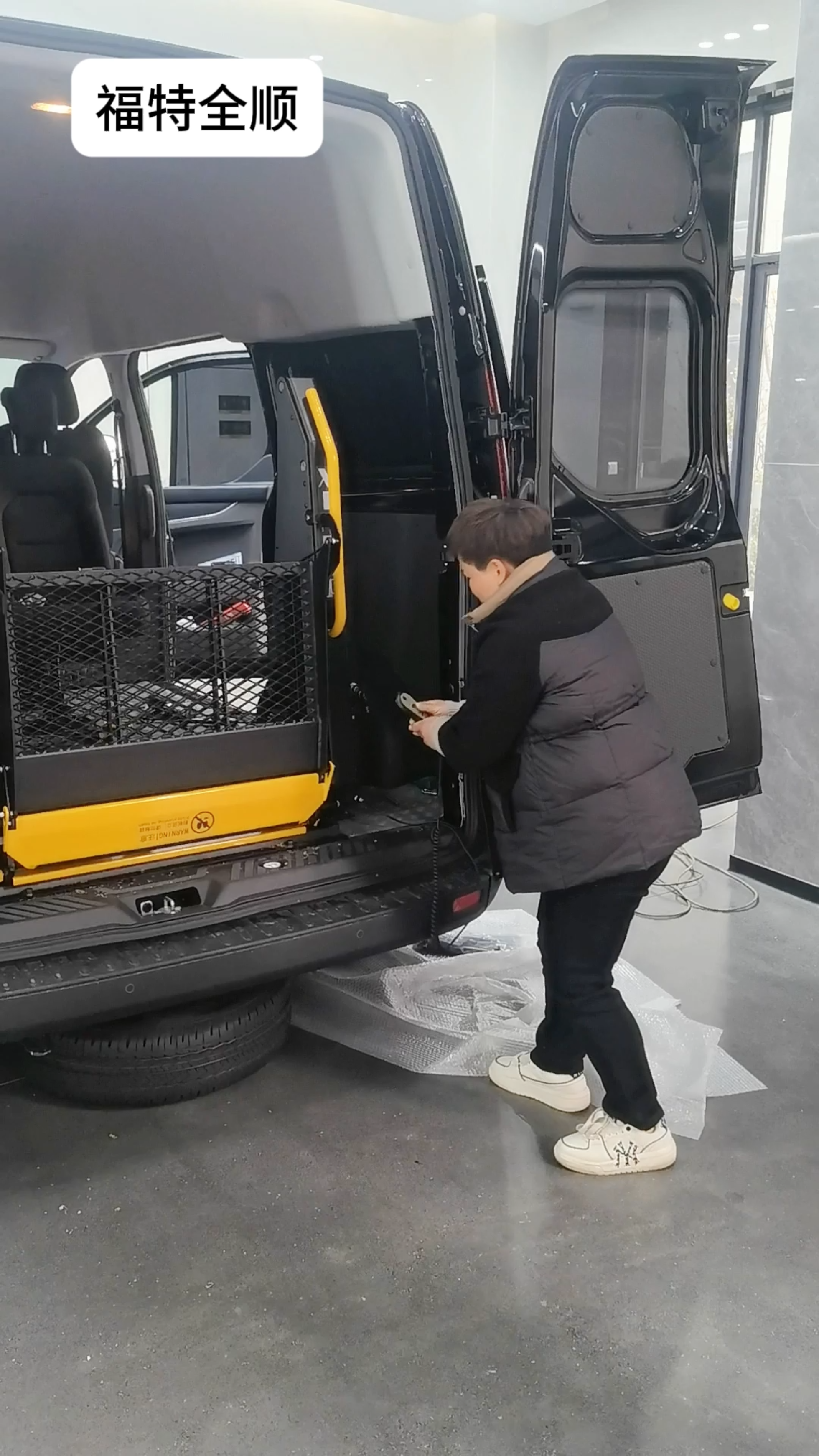 全顺车主独自驾车前来改装信德泰克轮椅升降机