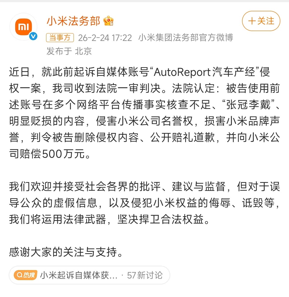 删除侵权内容、公开道歉、并赔偿500万,今年车企法务们会越来越硬。