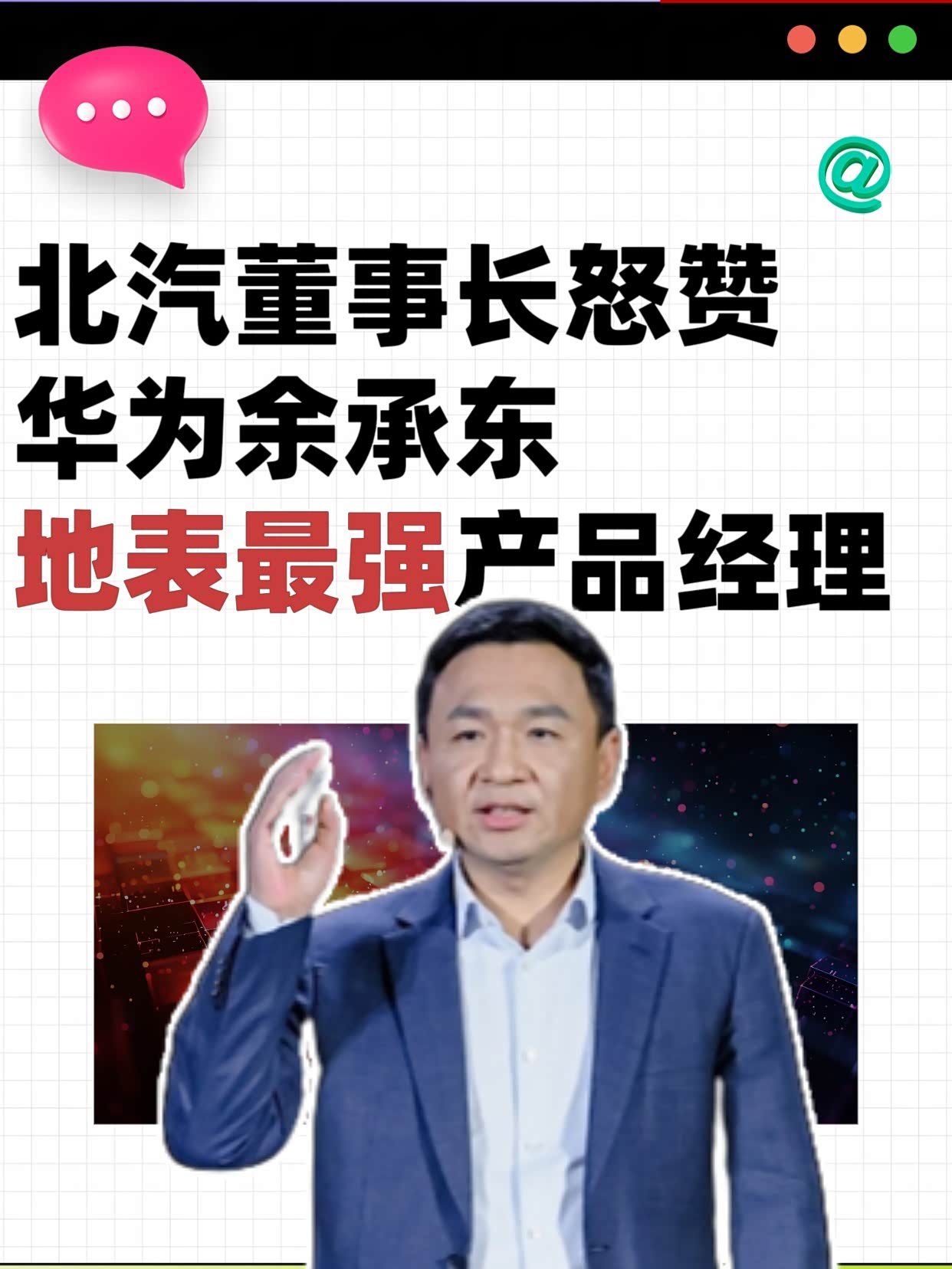 北汽董事长怒赞华为余承东:地表最好产品经理。