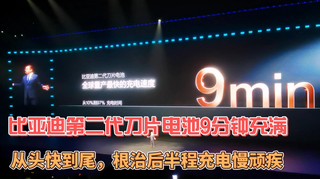 比亚迪第二代刀片电池9分钟充满,从头快到尾