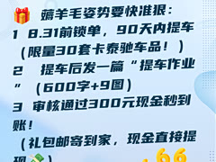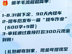 📌 谁说买车只能硬砍价? 大数据比价+官方补贴才是真·省钱密码! 深蓝全系(除G318)直接送1600元车居礼包,G318更是狂撒3000元野奢露营套装! 充气床、收纳箱、保温杯、抱枕被……全是实用货,自驾游装备一步到位! 🎁 薅羊毛流程超简单: 1️⃣ 8.31前下定,90天内提车 2️⃣ 提车后发布一篇“提车作业”(600字+9图) 3️⃣ 审核通过直接打款300元现金到账!(礼包邮寄到家,现金可提现至银行卡💳) 🔍 比价不用打电话! 直接去【汽车之家空间站】,输入城市+车型,秒查本地最低成交价! 还有AI买手帮你全网比价,省心省力还省时间☕️ 💬 评论区留言你的城市+车型 我来教你怎么领补贴⬇️(私信爆满,优先回复粉丝哦!)