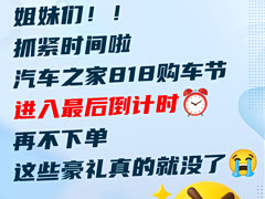 姐妹们!!抓紧时间啦‼️ 汽车之家818购车节进入最后倒计时 ⏰再不下单,这些豪礼真的就没了😭