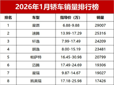 惨败!1月轿车销量榜,燃油车霸榜前二十,新能源仅2款车破万