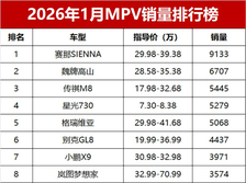 燃油车再霸榜!1月MPV销量榜揭晓,赛那又夺冠,腾势D9跌出前十