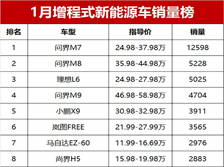 凄凉!1月增程式新能源车销量榜,仅1款车破万辆,理想遇冷