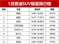 1月燃油SUV销量大比拼!13款车破万辆,吉利霸榜展现统治力