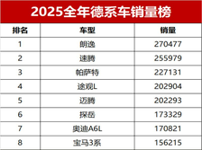 惨败!2025全年德系车零售榜,速腾夺亚军,宝马X3跌破8万辆