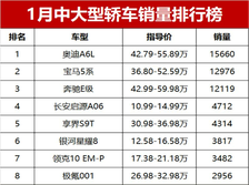 新能源完败!1月中大型车销量榜,燃油车揽前三,比亚迪汉仅第11
