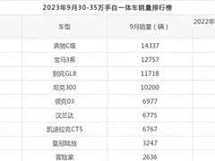 2023年9月30-35万手自一体车销量排行榜,TA成最大黑马