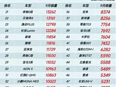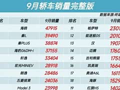 闭眼买,9月轿车销量完整版,海鸥第1、秦PLUS第3、Model3第9名