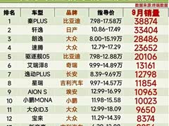 闭眼买,9月销量A级轿车榜,轩逸第2、逸动PLUS第7、宝来第12名