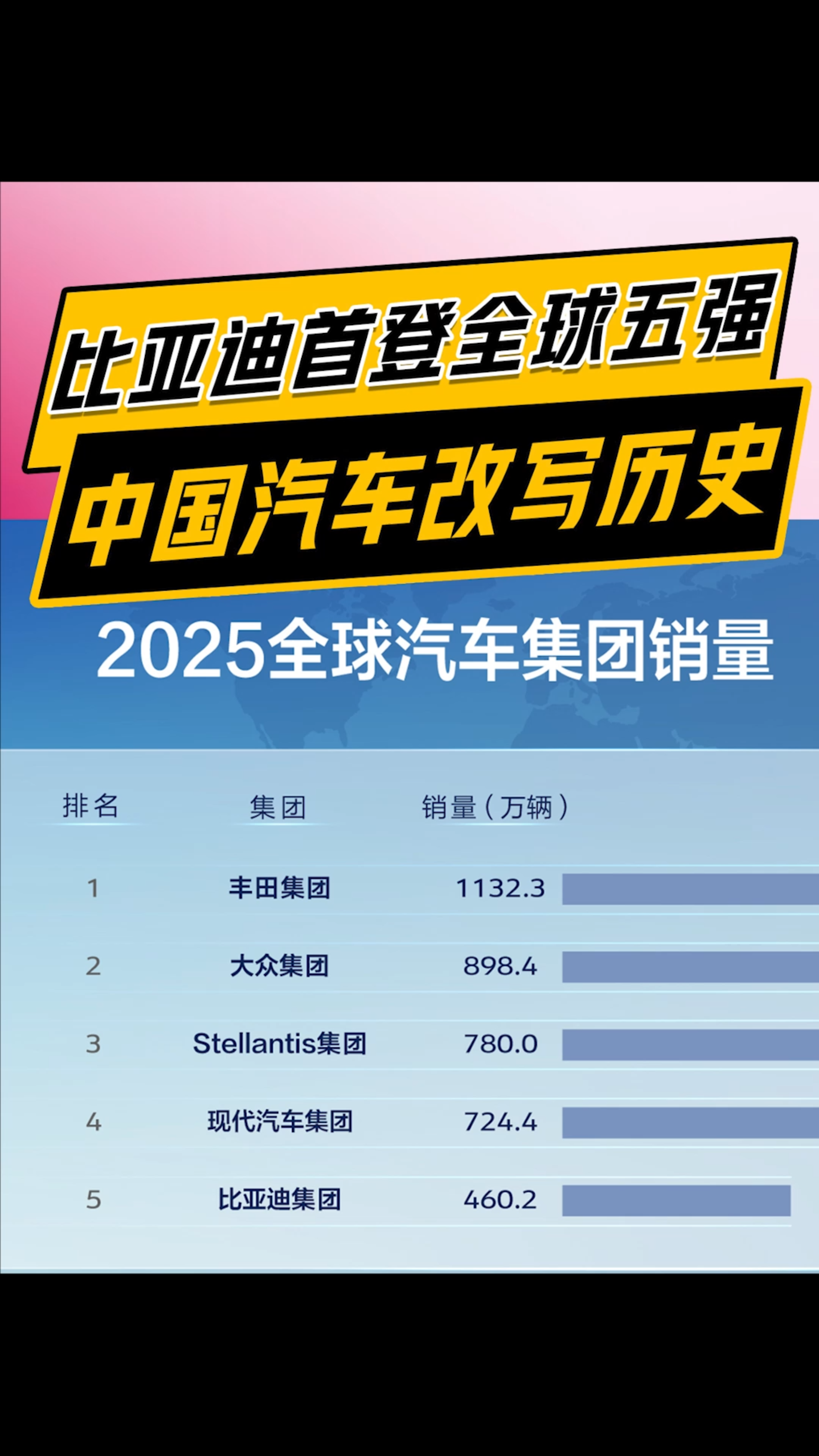 比亚迪年销量首次跻身全球前五,纯电超越特斯拉登顶全球冠军