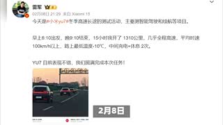 雷军公布小米YU7测试结果:冬季高速续航表现出色