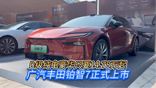 D级纯电豪华只要14.78万起 广汽丰田铂智7正式上市