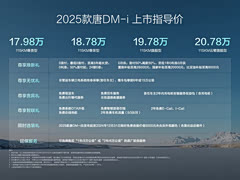 车盟快讯:中大型SUV油耗进入4L时代,比亚迪它真干了!2025款唐DM-i正式上市,共推出4款车型,指导价区间为17.98万-20.78万元,现在下订,还可享0首付或24期0息金融礼、三电终身质保、至高28000元置换补贴等的六重购车礼遇,新车搭载第五代DM技术,百公里亏电油耗仅4.95L,综合续航里程1150km,零百加速仅需7.5秒,还全系标配FSD可变阻尼悬架、轻量化高阶底盘等的驾控配置,那对于2025款唐DM-i这个定价,大家觉得这个价格如何?
