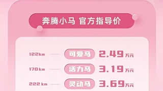 车盟快讯:今晚,一汽奔腾小马焕新上市,新车共推出4款车型,指导价区间为2.49万-3.99万元,其中新增长续航版车型价格区间为3.69万-3.99万元,现在下订,还可享至高4000元置换补贴、价值1500元交强险增送或金融贴息、价值6000元整车终身质保等的一系列购车优惠,长续航拓宽生活交通圈,丰富的质保政策免去用车的后顾之忧,做到服务与产品的双极致,大家觉得这次奔腾小马长续航上市的诚意如何?