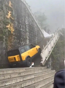奇瑞汽车挑战天门山天梯出意外,车辆打滑失控撞坏护栏
