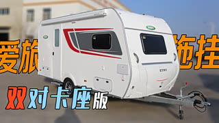 爱旅拖挂房车双卡座设计太少见!配400锂电600太阳能,行车能充电