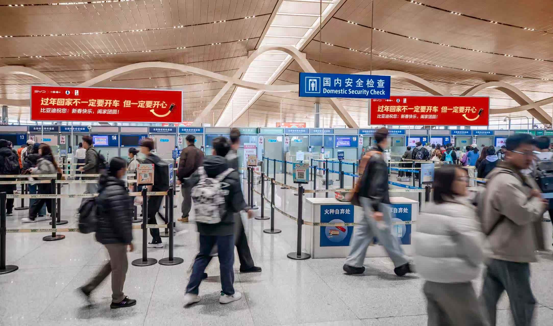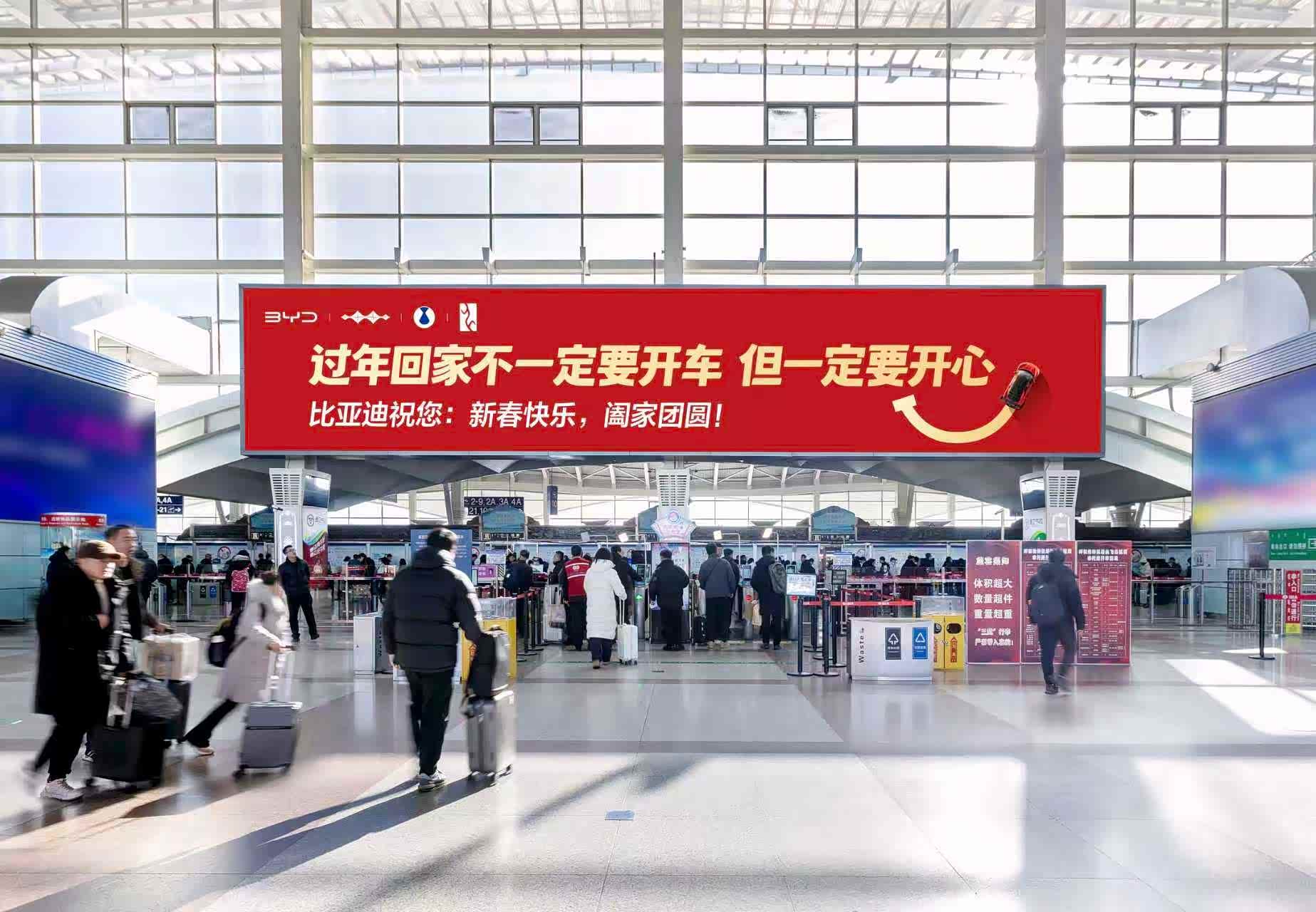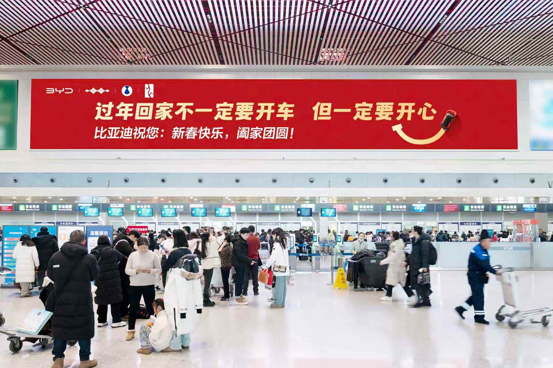 除夕到,年味浓,家家户户盼团圆!今年你是通过什么交通工具回家团年的?是自驾一路往家赶,还是坐高铁、乘飞机踏上归途?回家的方式有千百种,不变的都是那颗想回家的心。最近在机场等登机口,不少人都看到了比亚迪的新春广告牌,上面那句祝福语特别戳人——“过年回家不一定要开车,但一定要开心”。#过年回家不一定要开车但一定要开心# 简单一句问候,却让人心头一暖,不用纠结怎么回家,怎么方便、怎么舒心就怎么来,比起开什么车,我们更在意你回家路上顺不顺利,到家开不开心。团圆的意义,从来不在出行的方式,而在一家人整整齐齐、热热闹闹的相聚!#比亚迪的新年祝福有点意思#
