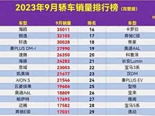 9月轿车销量排行榜公布!真变天!前10国产占大半?
