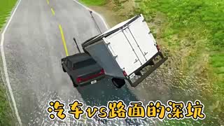 汽车遭遇路面深坑,反应惊险!