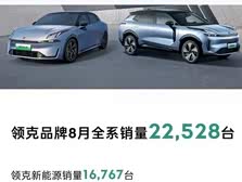 领克品牌公布8月销量,达到22528台