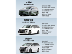 核心参数与价格: 价格:小鹏X9的价格为30.98万元,相比岚图梦想家的42.99万和腾势D9的45.98万,拥有超过10万元的价格优势,性价比极为突出。 三电系统与续航: 续航与能耗:小鹏X9的CLTC综合续航1602km、纯电续航452km均为三者第一,能满足更长时间的城市纯电通勤。其WLTC综合油耗2.53L/100km和电耗20.5kWh/100km也是三车中最优,经济性最佳。 充电与技术:小鹏X9与岚图梦想家均搭载800V高压快充平台,均支持5c快充,而腾势D9仍为400V平台。 智能座舱:小鹏X9配备17.3英寸中控屏与21.4英寸后排娱乐屏,屏幕尺寸大于对手。其音响扬声器数量(27个)也多于岚图(22个)和腾势(18个)。 智能驾驶:小鹏X9搭载算力达750 TOPS的智驾芯片,并宣布全场景智驾免费。岚图梦想家智驾需额外付费,腾势D9的智驾功能则存在城市限制。 小鹏X9超级增程版的入场,它在续航、能耗、空间灵活性和智能驾控方面建立了明显优势。腾势D9凭借先发优势和市场口碑占据一席之地,但在核心三电技术与智能化层面正面临严峻挑战。 对于追求全能体验与极致性价比的消费者而言,小鹏X9无疑是当前最具竞争力的新选择。