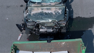 托底后遭5吨重卡车前后夹击,猛士M817电池无异常、四车门正常开