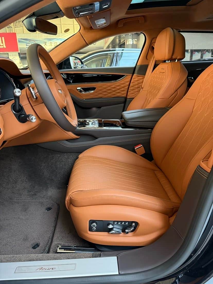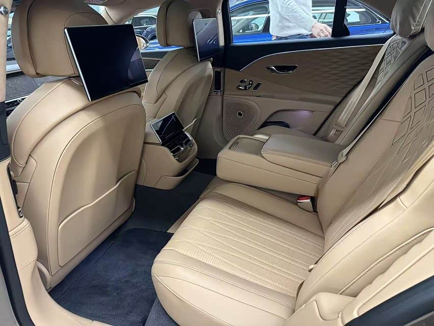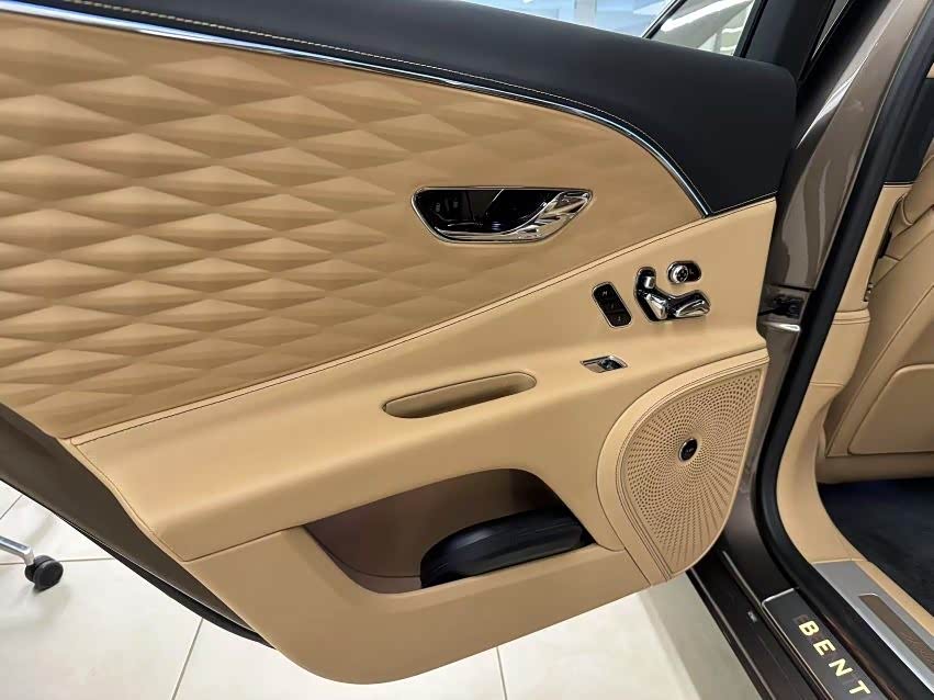 配置:23款欧规宾利飞驰雅度版   V8  4.0T   颜色:黑/纽马克特褐/鲸黑双拼内饰 车架号:9885   开票:260万 生产日期:23.8 选装配置:座椅刺绣雅度宾利徽章,黑钢琴漆面板,3辐式加热方向盘,方向盘对比缝线,氛围灯,升降立标,全景天窗,含遮光板和化妆镜,LED迎宾灯,宾利动态驾驶(后轮转向)红色卡钳,手机无线充电器,宾利三面旋转屏。 ①穆勒包(22寸黑色喷漆轮毂,三维立体菱形格门板,菱形格座椅,刹车油门B字限量标识,金属机油盖,宝石油箱盖) ②座椅舒适包(前后排座椅加热,通风,按摩) ③城市包(360环车影像,盲点监测,路标限速识别,空气净化系统,脚感电尾门) ④旅行包(雷达测距,抬头显示,夜视系统)
