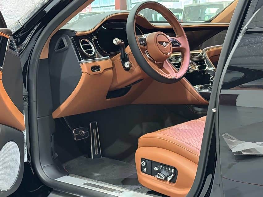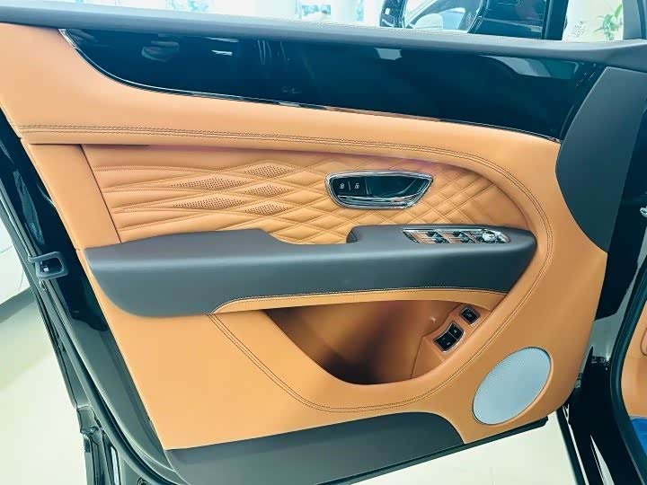 配置:25 款宾利.添越 V8标轴 A 版 外观:宝石黑 内饰:亚麻白/纽马克特褐 选配:22 寸五幅定向铝合金喷漆轮毂 自正式轮毂盖 天然哑光直纹胡桃木饰面板 双色多功能加热方向盘  座椅宾利徽章刺绣  反衬色座椅滚边 反衬色座椅缝线 前排座椅(通风 加热 按摩 )后排折叠桌板  旅行包(雷达测距 夜视 抬头显示)