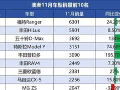 澳洲11月汽车销量再创新高,福特Ranger打败丰田HiLux再登顶