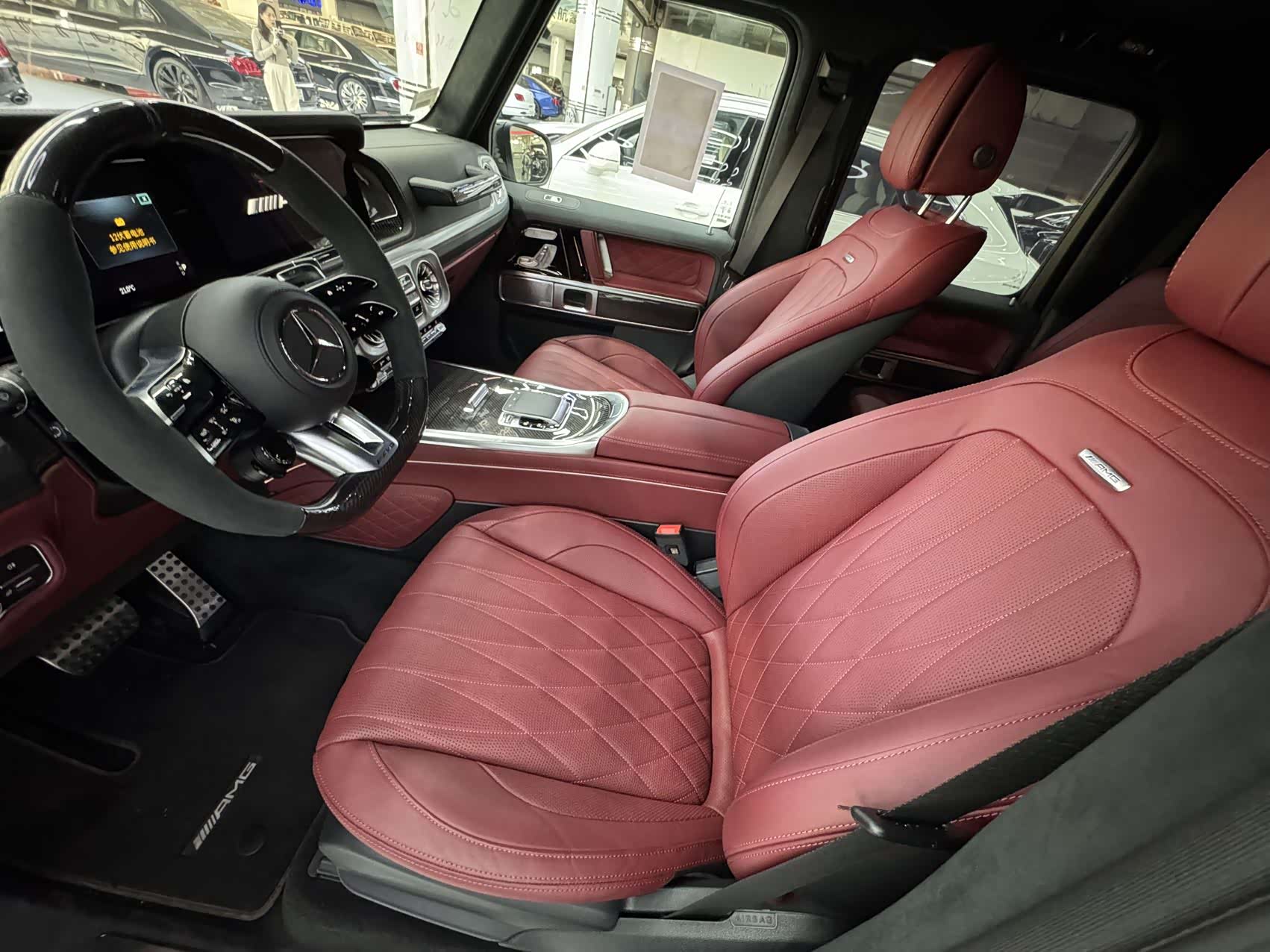 25款欧规G63 三碳满配 309增值 黑色 / 红  开票260 配置:碳纤维内饰、碳纤维外观包、碳纤维方向盘)、暗夜包、22寸黑色轮毂、舒适包(无钥匙进入、车库门可编程、温度可调节杯架、 前无线充电)、电磁悬挂功能、后娱。