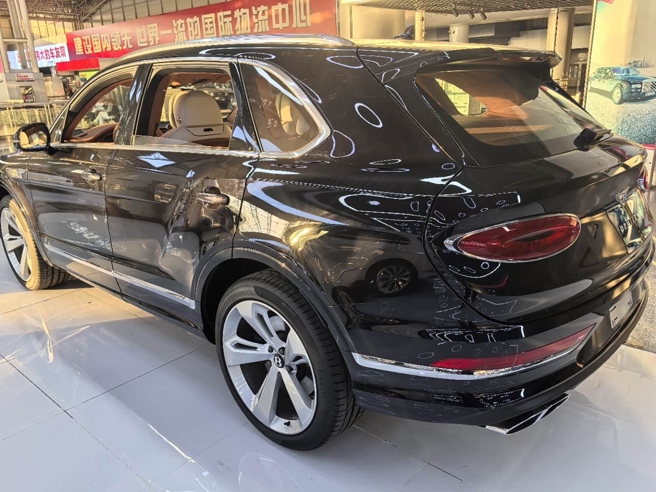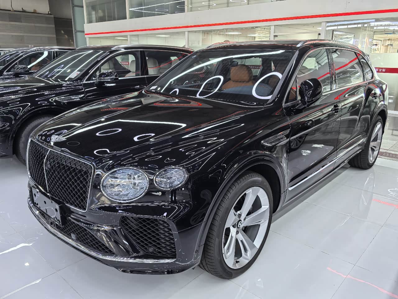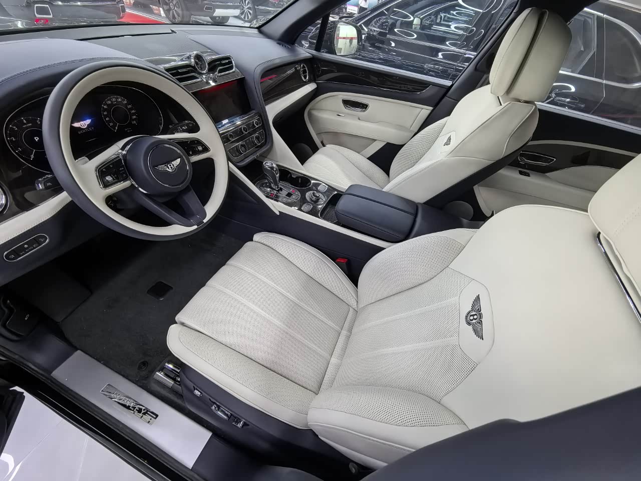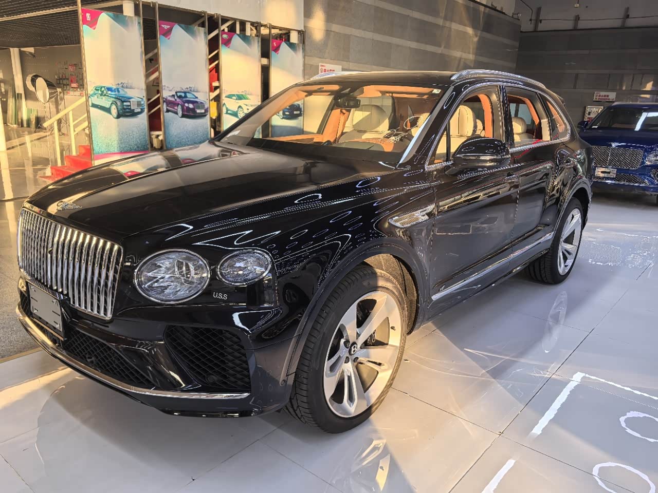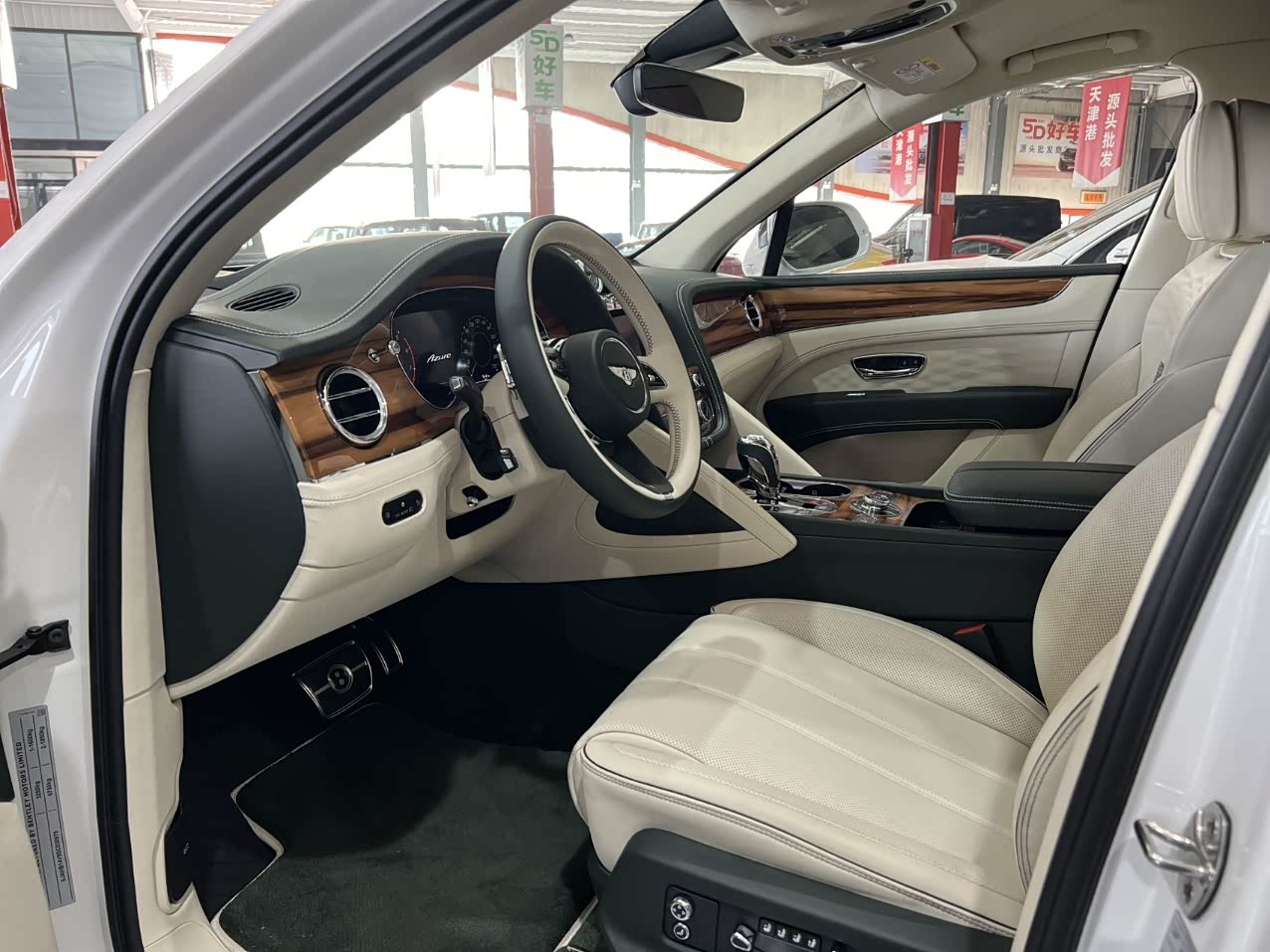 24款宾利.添越 V8标轴 A 版 260增值 外观:宝石黑 内饰:亚麻白/纽马克特褐 选配:22 寸五幅定向铝合金喷漆轮毂 自正式轮毂盖 天然哑光直纹胡桃木饰面板 双色多功能加热方向盘  座椅宾利徽章刺绣  反衬色座椅滚边 反衬色座椅缝线 前排座椅(通风 加热 按摩 )后排折叠桌板  旅行包(雷达测距 夜视 抬头显示) 日期24.12 开票233左右